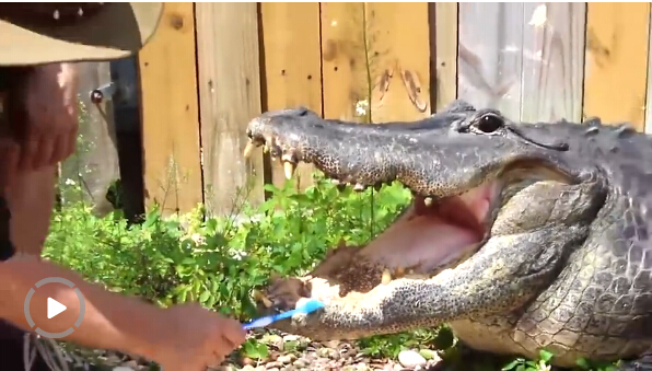 无所畏惧!美男子给鳄鱼刷牙(图)