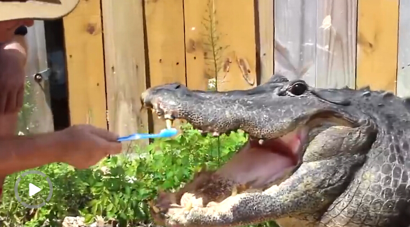 无所畏惧!美男子给鳄鱼刷牙(图)