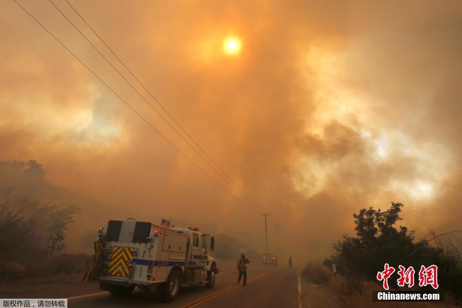 美国加州再起山火 火势蔓延迅速浓烟遮天蔽日(组图)
