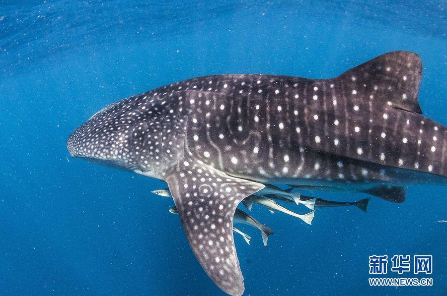 近日拍摄的照片显示,一头鲸鲨在西澳大利亚宁加鲁礁游弋。当地开展潜水游,游客可以在导游带领下潜水,近距离观察海洋生物。新华网发(林南星摄)