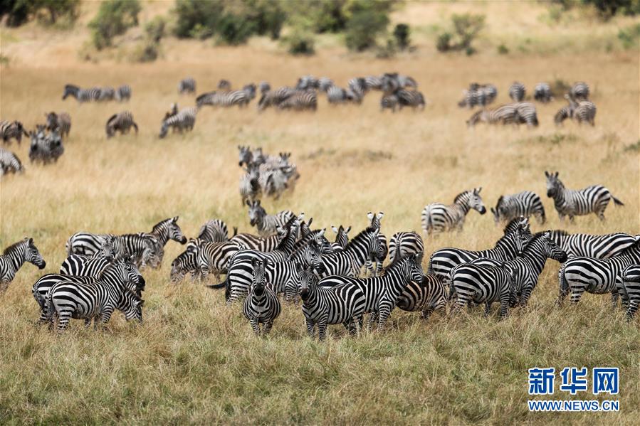 7月23日,在肯尼亚马赛马拉国家保护区,一群斑马在草原上活动。每年7月起,数以百万计的角马、斑马等野生动物从坦桑尼亚塞伦盖蒂国家公园追逐水源和青草至肯尼亚马赛马拉国家保护区,构成野生动物大迁徙景观。马赛马拉国家保护区是世界上最著名的野生动物保护区之一,总面积达1800多平方公里。新华社记者 潘思危 摄