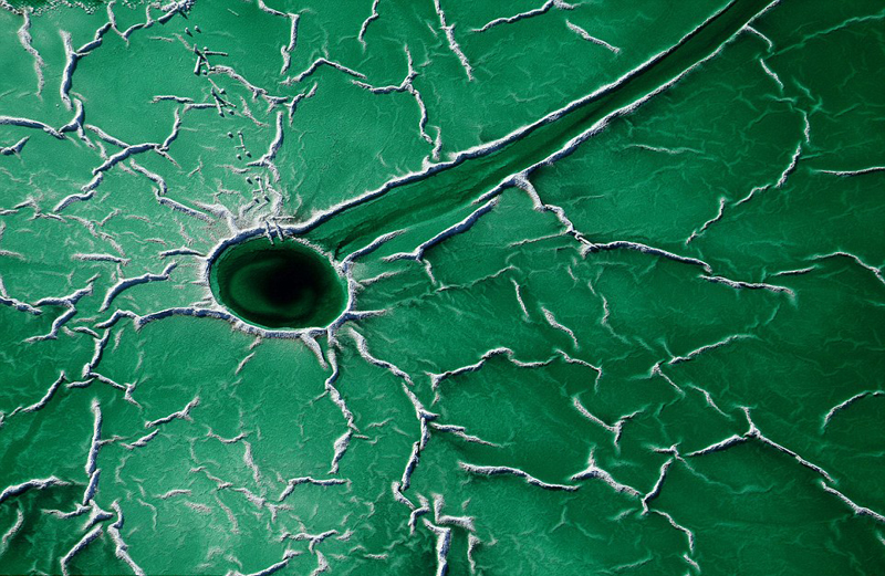 图为摄影师弗朗西斯科(Francisco Mingorance)抓拍到这样一幅磷石膏的池塘的画面。