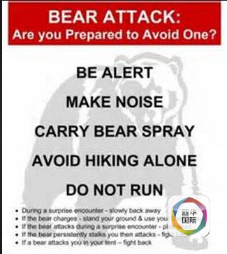 “徒步的时候最好人多些,一边走一边多制造些噪音,可能会吓跑不明觉厉的熊们”