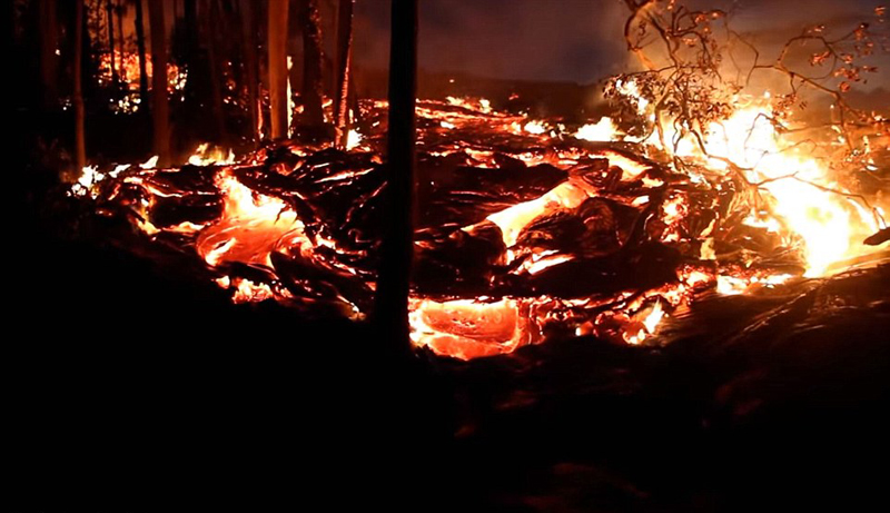 夏威夷活火山喷发 熔浆吞噬森林(高清)