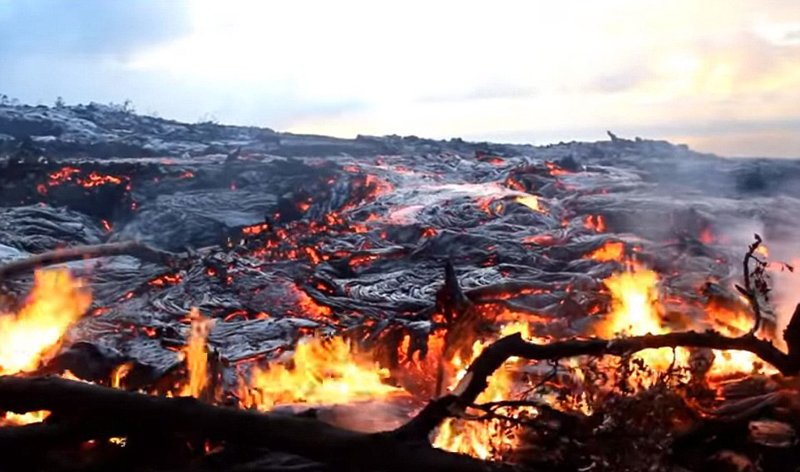 夏威夷活火山喷发 熔浆吞噬森林(高清)