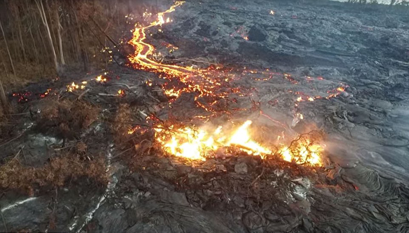一位摄影师日前拍摄到了美国夏威夷基拉韦厄火山岩浆吞噬森林的画面。