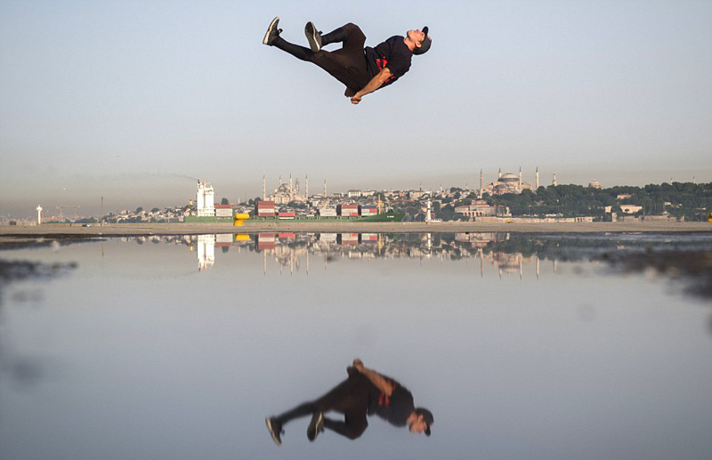 来自德国的25岁的贾森 保罗(Jason Paul)和来自希腊的21岁的季米特里斯 克桑尼蒂斯(Dimitris Kyrsanidis)在土耳其伊斯坦布尔的海达帕萨港口玩起了惊险的自由飞跃,勇气可嘉,令人佩服。