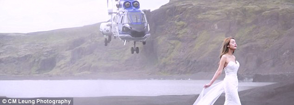 新人拍摄婚纱照 直升机险将新娘吹走(图)