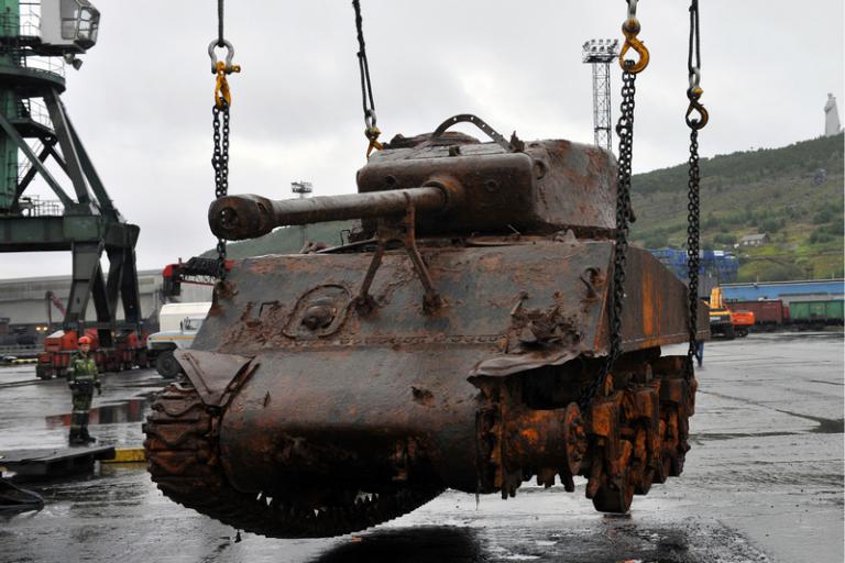 俄北方舰队打捞出一辆二战美军援苏主战坦克