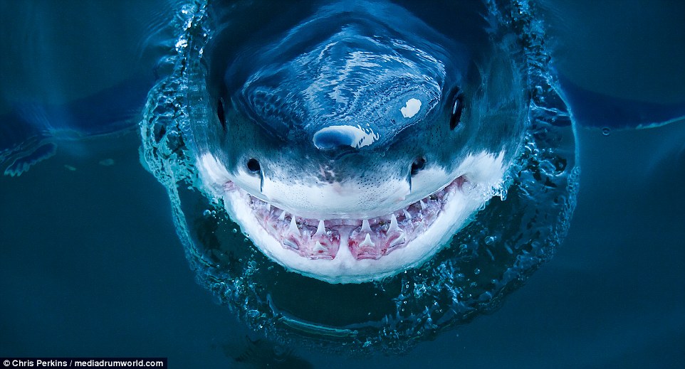 据英国《每日邮报》7月29日报道,近日,25岁男子Chris Perkins在南非的Gansbaii拍到了一张恐怖的大白鲨照片,据了解,这张照片中的大白鲨刚好游出水面并且与摄影师面对面,它露出锋利牙齿的瞬间看上去好像在微笑,同时摄影师还在水下拍摄了大量鲨鱼的照片。