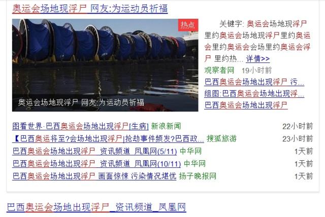 小编马上联系了新华社驻里约热内卢分社记者赵焱,她对这条新闻的出现十分吃惊!因为身在里约的她,根本没听说这件事。经过仔细查证,她表示巴西当地媒体完全没有报道过有关“奥运场地浮尸”的消息,而且美联、路透、法新等西方主要通讯社也都没有报道。