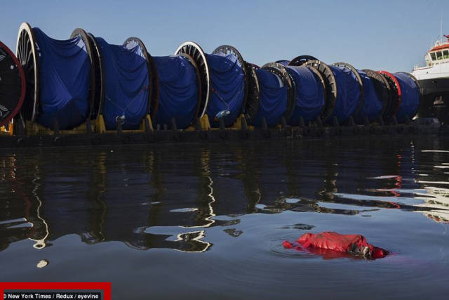 这时我们发现,在网传浮尸图片的左下角,有《纽约时报》的水印。