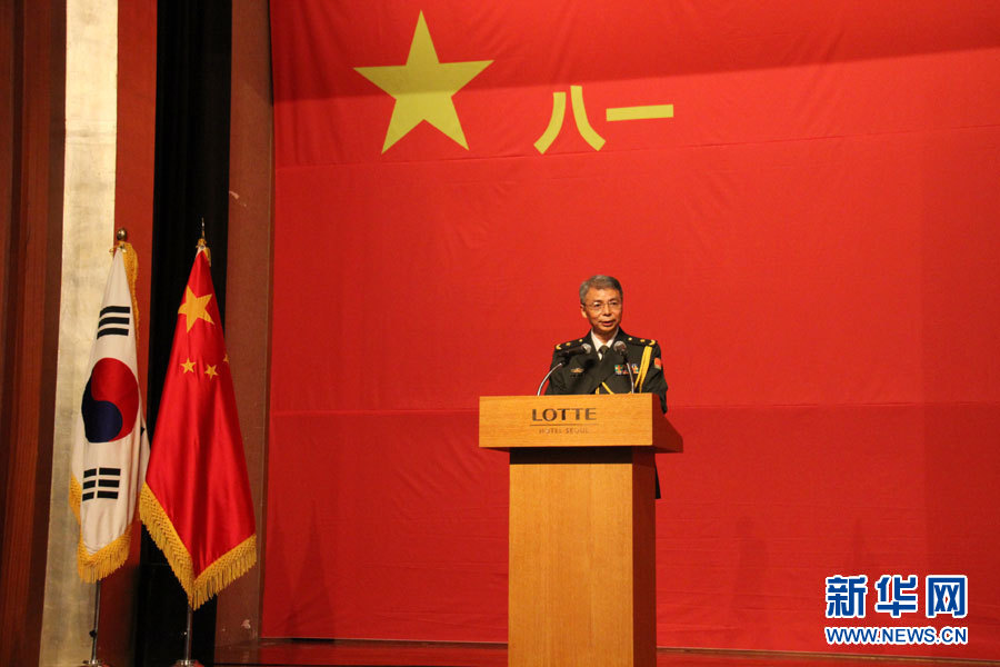 7月28日,中国驻韩国大使馆在首尔举行“八一”建军节招待会,隆重庆祝中国人民解放军建军89周年。图为中国驻韩国大使馆武官杜农一代表使馆致辞。新华网记者王家辉摄