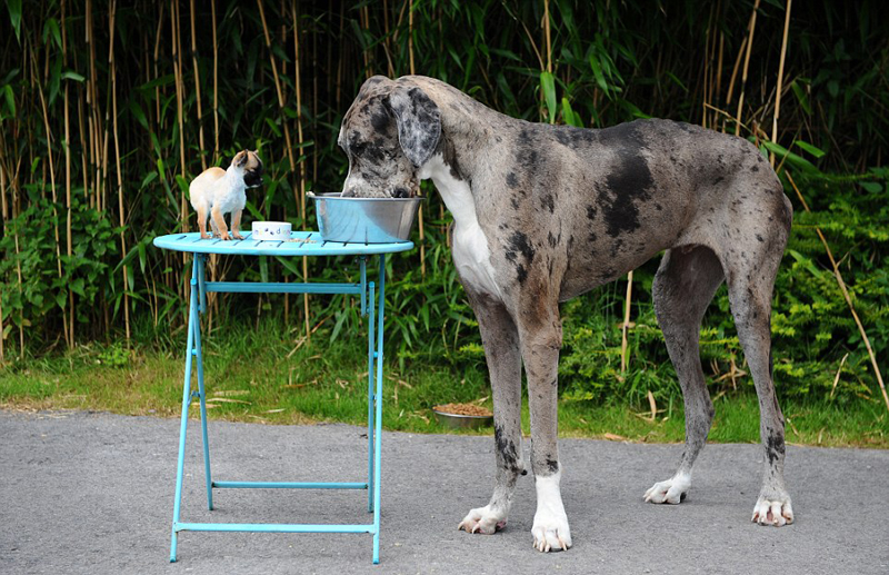世界最高狗邂逅英国最小狗 相处融洽(组图)
