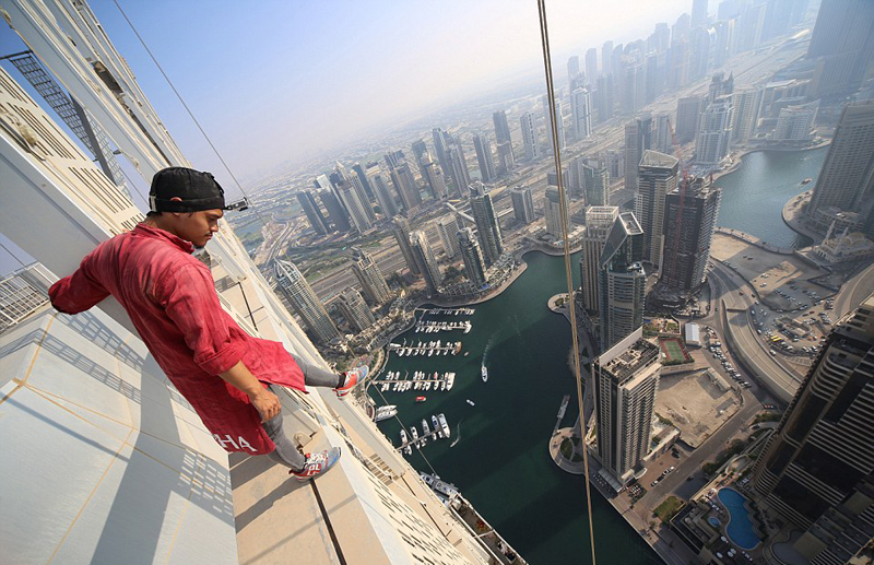 城市探险者摩天楼顶秀自拍 勇敢无畏(组图)