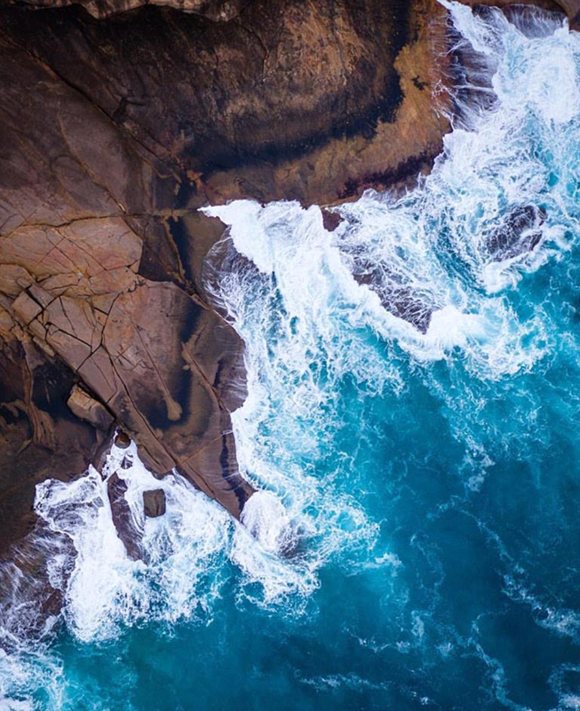 照片美得令人窒息。海水颜色变化多端,从浅蓝到深蓝、从碧绿到粉红;岸边各色悬崖,有橘的、蓝的、黑的,与海水形成鲜明对比;细长的沙滩宛如一条银丝带镶嵌着海岸,时有澎湃的海浪拍击怪石嶙峋的海礁,还有快艇游过带出一条优美的白线。透过照片仿佛可以闻到清新的海水味。