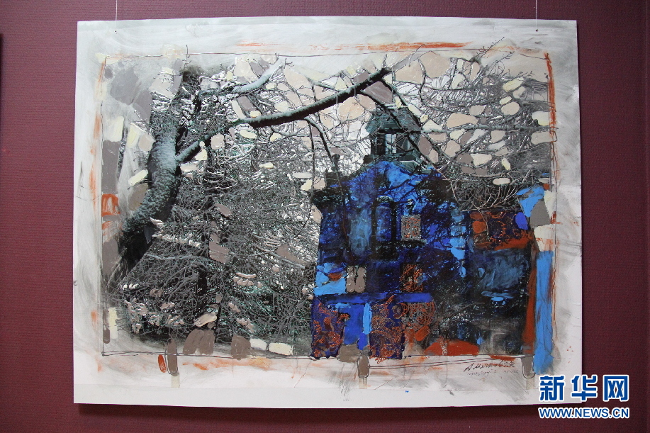 8月4日,《北风之城》画展在俄罗斯远东城市符拉迪沃斯托克滨海边疆区国立美术馆举行。此次画展上展出的80多幅作品来自亚历山大·皮利片科、亚历山大·米亚科夫及弗拉基米尔·米亚科夫这3位马加丹画家。画作题材主要与神话、传说、戏剧有关。图为画展上的作品。 新华网记者吴刚摄