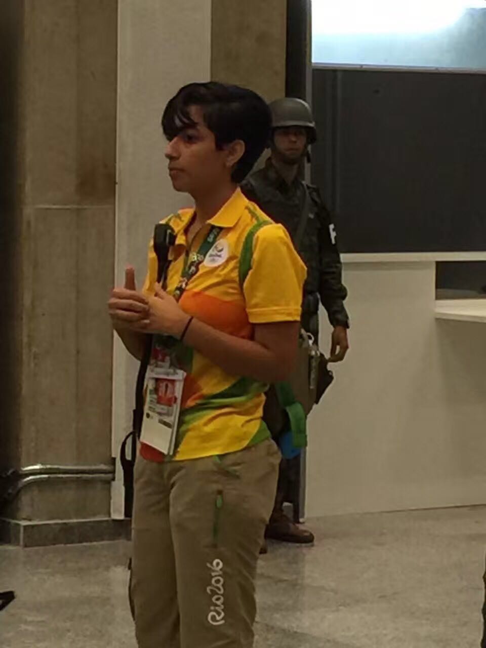 走出登机桥,第一眼就看到穿着361°标识奥运服装的奥运会志愿者,在询问乘客中是否有官方邀请人员需要办理认证;虽然之前已了解到361°为里约奥运会提供全部工作服装,但一下飞机看到如此醒目的中国品牌,“他乡遇故知”的惊喜油然同生。