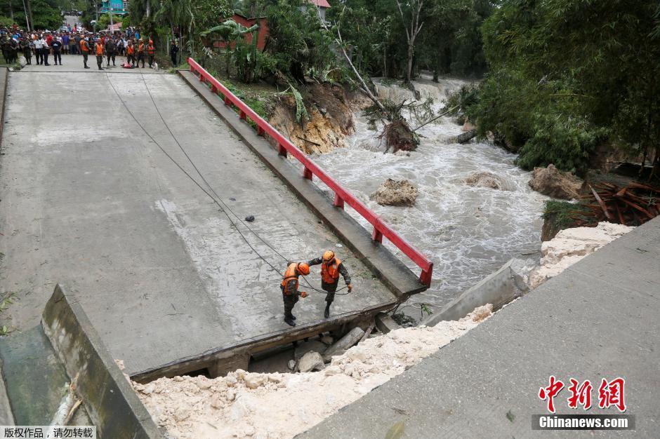 飓风“厄尔”侵袭中美洲 桥梁被冲毁