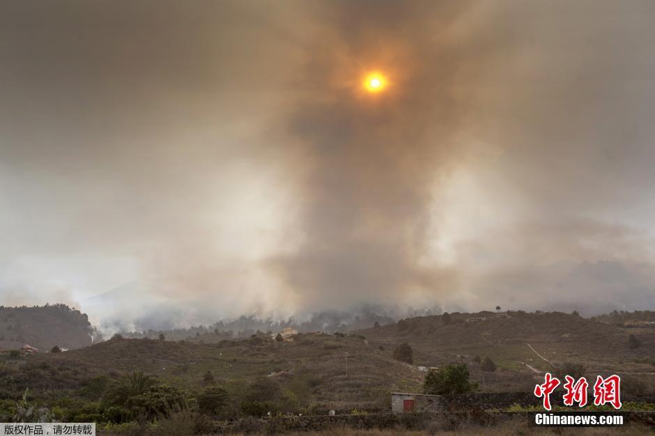 西班牙加那利群岛发生山火 滚滚浓烟遮天蔽日(组图)