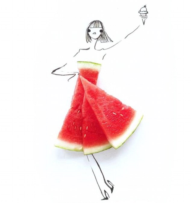 美设计师巧妙结合果蔬与素描打造时装(组图)