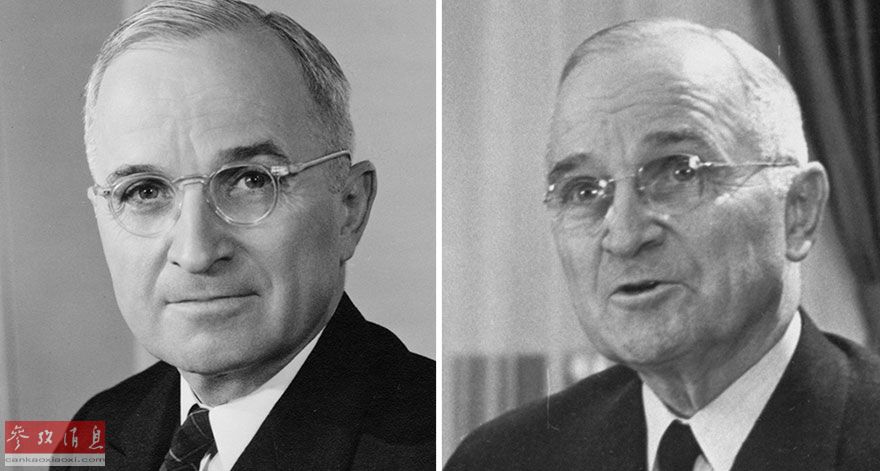 美国前总统哈里·S·杜鲁门1945年和1953年对比照。