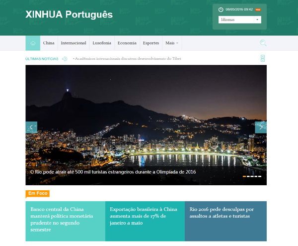 新华网葡萄牙文网站截屏。
