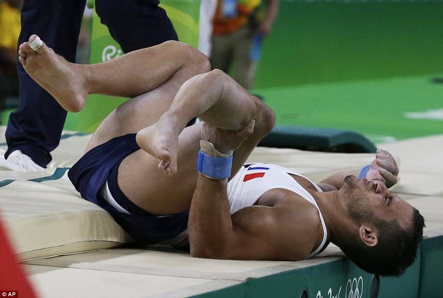 法国跳马运动员落地骨折 小腿90度弯曲(图)