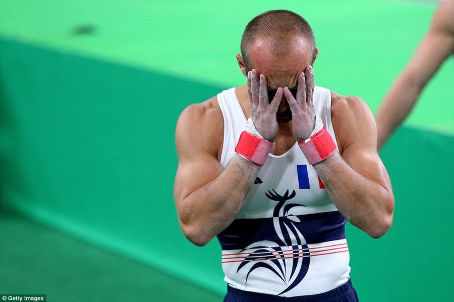 这恐怖的一幕也吓坏了场边的体操运动员。图为同为法国选手丹尼。