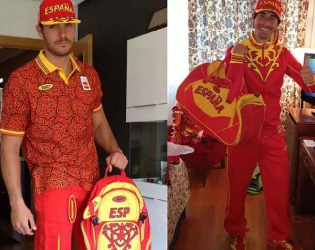这服装的设计真不如咱们的“番茄炒蛋”漂亮,我是说真心话。不过呢,今年的里约奥运会,西班牙的队服却让人眼前一亮。