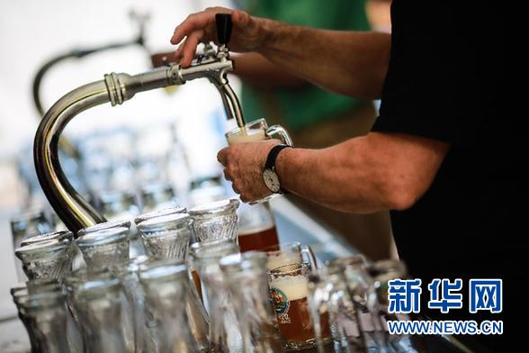 8月6日,在德国柏林举办的啤酒节上,一名工作人员为顾客准备啤酒。为期三天的第20届柏林啤酒节当日进入第二天。本届啤酒节,来自87个国家和地区的300多家酿酒厂带来约2400种不同口味的啤酒。柏林啤酒节始于1997年,在每年八月的第一个周末举办。 新华社记者 张帆 摄