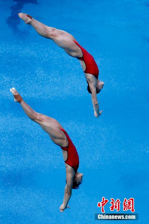 当地时间8月7日,在里约奥运会女子双人三米板决赛中,中国选手吴敏霞/施廷懋一路领先,无悬念夺得桂冠。这是吴敏霞在奥运会跳水项目上的个人第五金,而5金1银1铜的成绩也让她超越了萨乌丁、伏明霞、郭晶晶等名将,成为奥运会跳水项目第一人,为自己的跳水生涯画上圆满句号。图为吴敏霞和施廷懋在比赛中。中新网记者 杜洋 摄