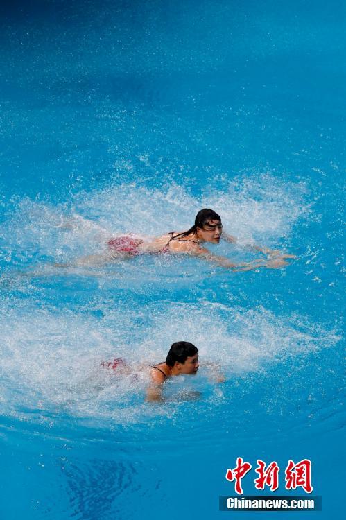 当地时间8月7日,在里约奥运会女子双人三米板决赛中,中国选手吴敏霞/施廷懋一路领先,无悬念夺得桂冠。这是吴敏霞在奥运会跳水项目上的个人第五金,而5金1银1铜的成绩也让她超越了萨乌丁、伏明霞、郭晶晶等名将,成为奥运会跳水项目第一人,为自己的跳水生涯画上圆满句号。图为吴敏霞和施廷懋在比赛中。中新网记者 杜洋 摄
