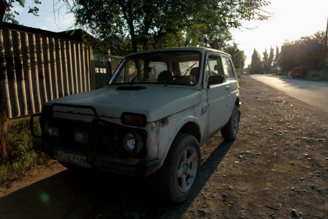 图为停在路边的俄制“尼瓦”经济型四驱越野车