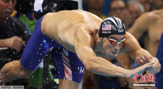 资料图:菲尔普斯在比赛中。他的背部可见拔火罐痕迹。