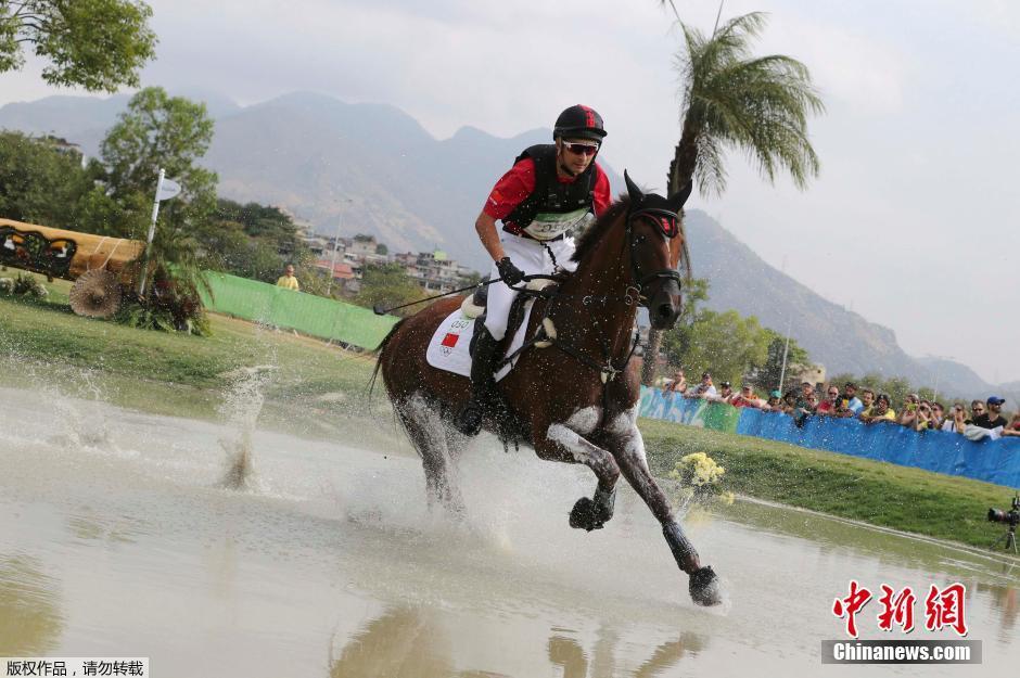 当地时间8月8日,里约奥运会马术项目展开三项赛越野赛较量,中国选手华天亮相。