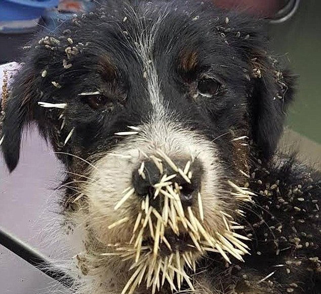 美机场流浪狗被人发现 脸上扎满350根豪猪刺(组图)