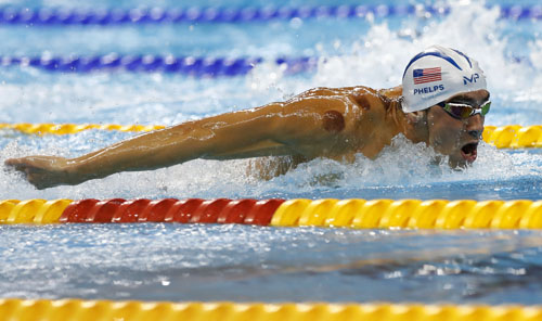 8月8日,菲尔普斯在男子200米蝶泳预赛中。新华社记者丁旭摄