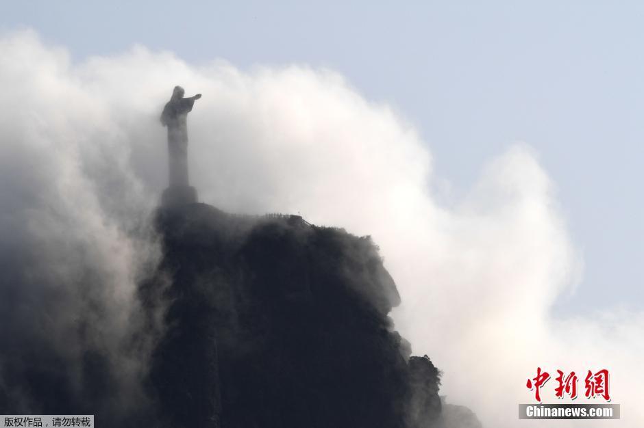 当地时间2016年8月9日,巴西里约热内卢,巴西基督山上的耶稣像被云雾包围,若隐若现。