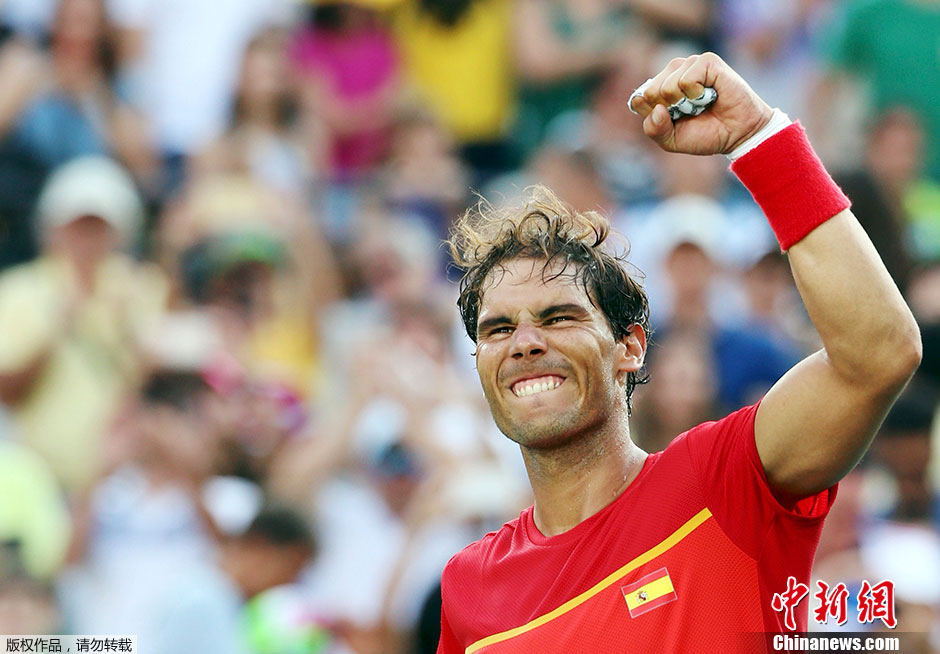 8月9日,里约奥运会网球男子单打第二轮,纳达尔庆祝胜利。