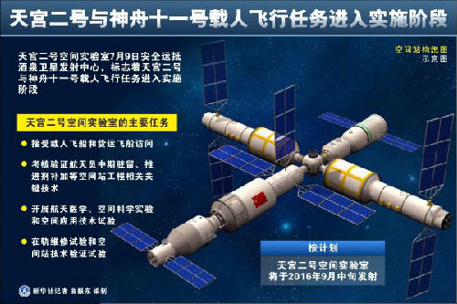 图表:天宫二号与神舟十一号载人飞行任务进入实施阶段 新华社记者 曲振东 编制