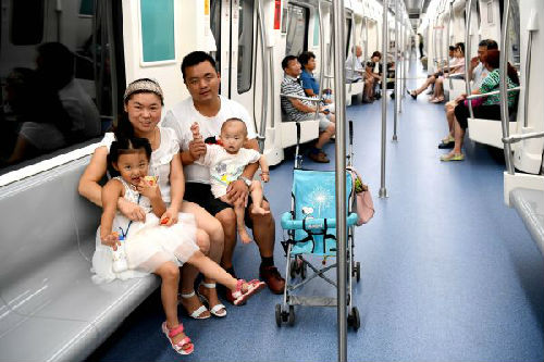 图说:2016年8月10日,郑州市民体验乘坐地铁2号线。新华社发