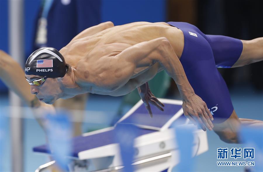 8月11日,美国选手菲尔普斯在决赛中出发。当日,在2016年里约奥运会游泳男子200米个人混合决赛中,美国选手菲尔普斯以1分54秒66的成绩夺冠。 新华社记者费茂华摄