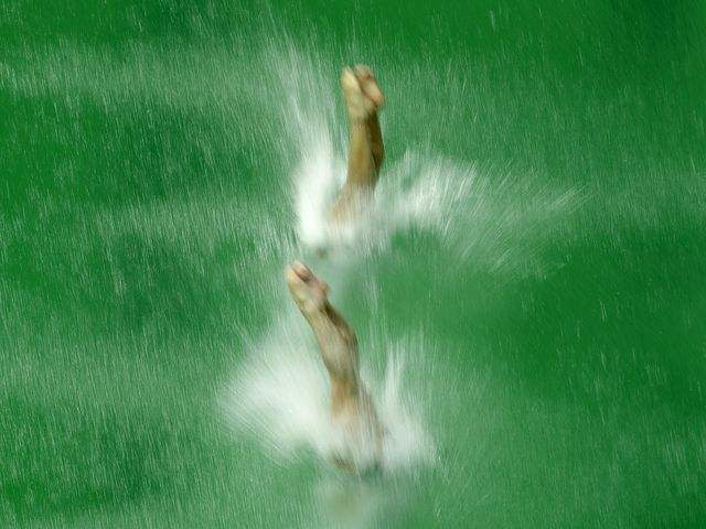 她说:“池水总是在变化……不光是绿,还有些暗,在水下我始终闭着眼睛。”