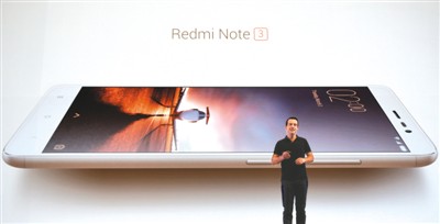 今年3月3日,在印度首都新德里,小米科技推出专门针对印度市场的红米Note 3手机。图为小米科技全球副总裁雨果·巴拉在发布会上介绍红米Note 3手机。