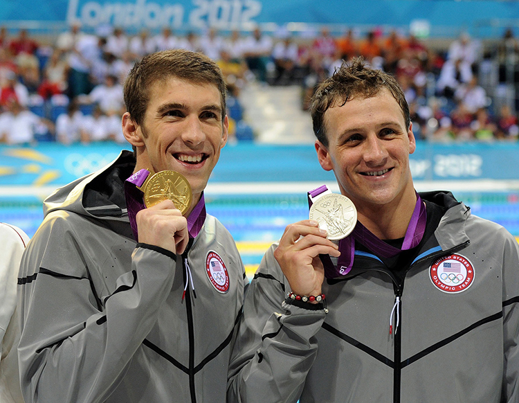 资料图:美国泳坛名将瑞安·罗切特(右)。