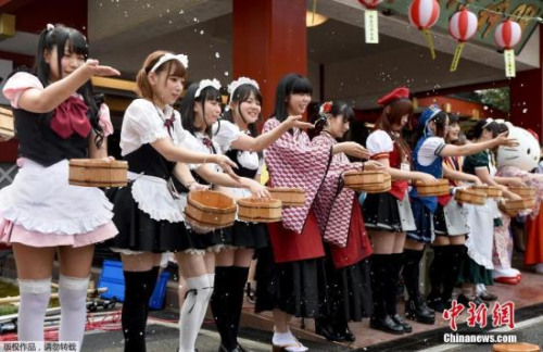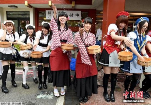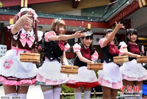 中新网8月16日电 据日媒报道,近日,日本东京秋叶原女仆咖啡馆的服务生们与该国cosplay(角色扮演)爱好者在街头洒水,降温消暑,参加一年一度的夏日消暑活动。