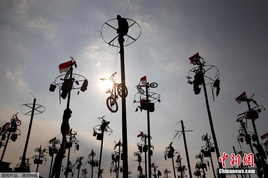 印尼民众“爬杆”纪念第71个独立日