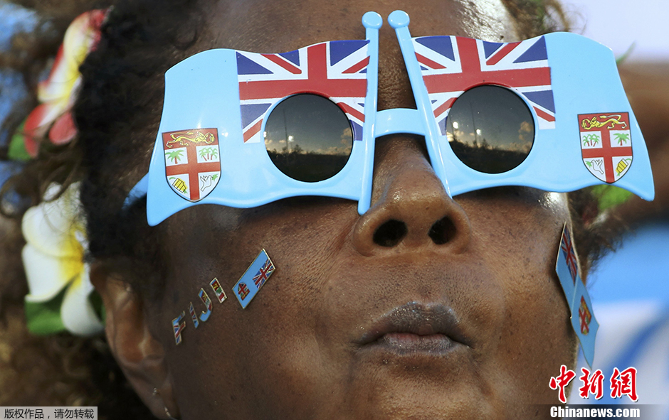 黑色的镜片里映射天边云朵和树林,生活不止眼前的球赛,还有远方诗一般的风景。好想问问这位斐济的大姐,这样实在看比赛还是看日全食?