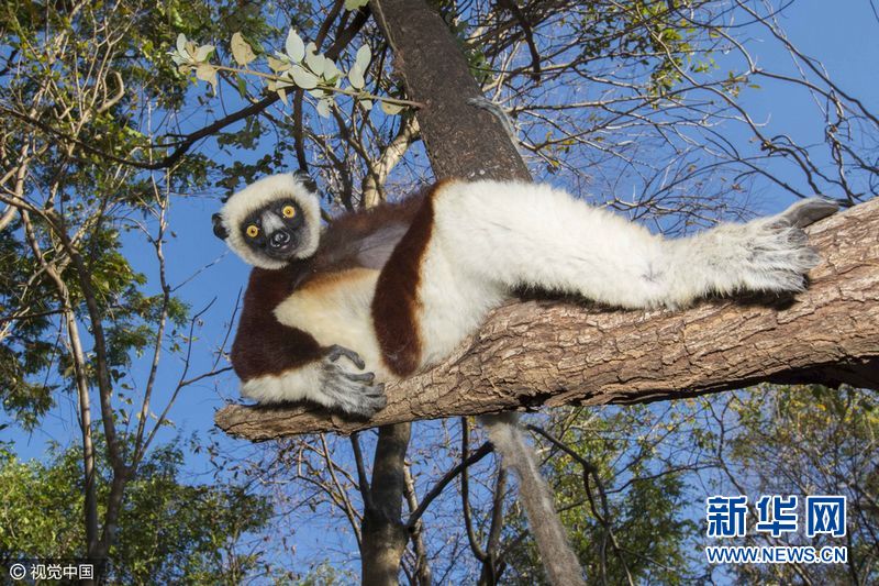2015年11月4日消息,一只雌性狐猴躺在树干上,姿势就如同凯特·温斯莱特在电影《泰坦尼克号》里面摆出的pose一般。这只狐猴是一群狐猴的家长,毫无疑问的占据着“舞台”的中央,在四米高的树干上,它惬意的为摄影师摆着pose。来自英国的21岁的Sam Rowley在马达加斯加岛拍摄到这些照片。视觉中国